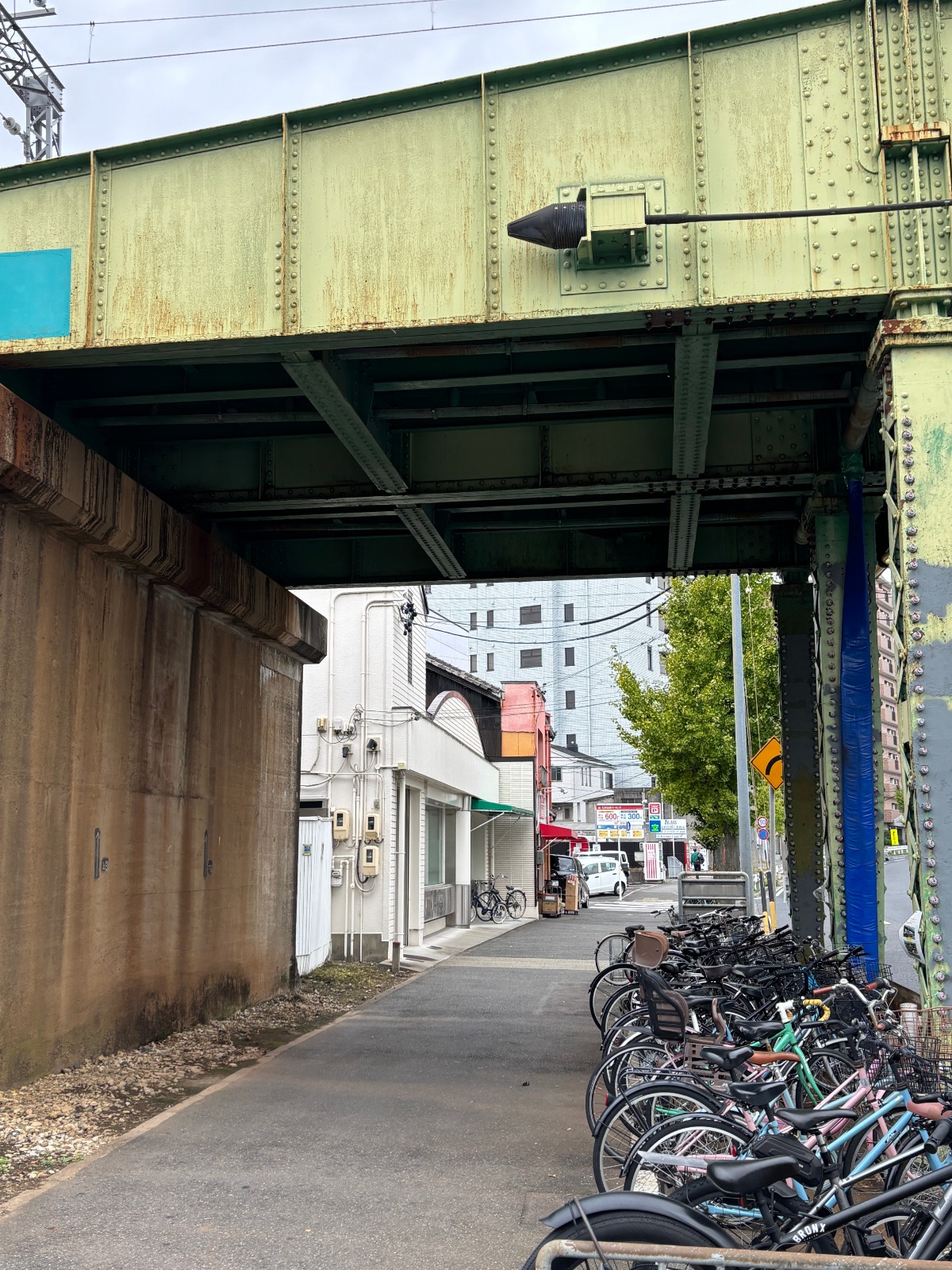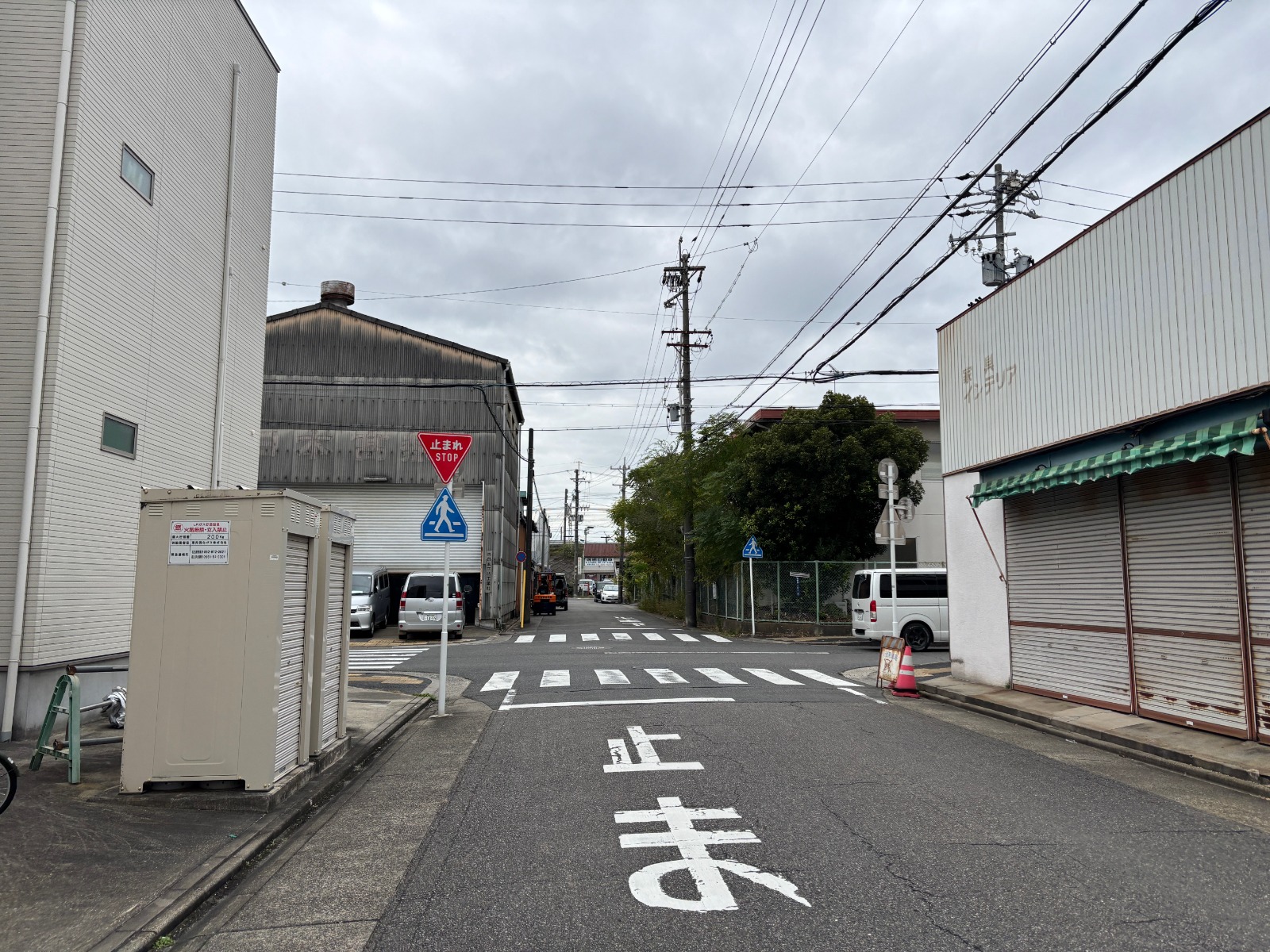 高架をくぐって、1つ目の交差点を左(南西)へ曲がりましょう。