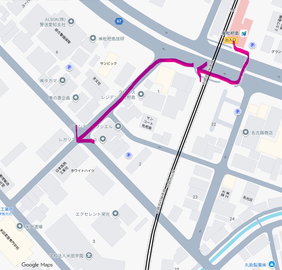 色々紹介したいことがありますが、今日は学校の周り、最寄り駅の名鉄東枇杷島駅からの道のりを紹介したいと思います。