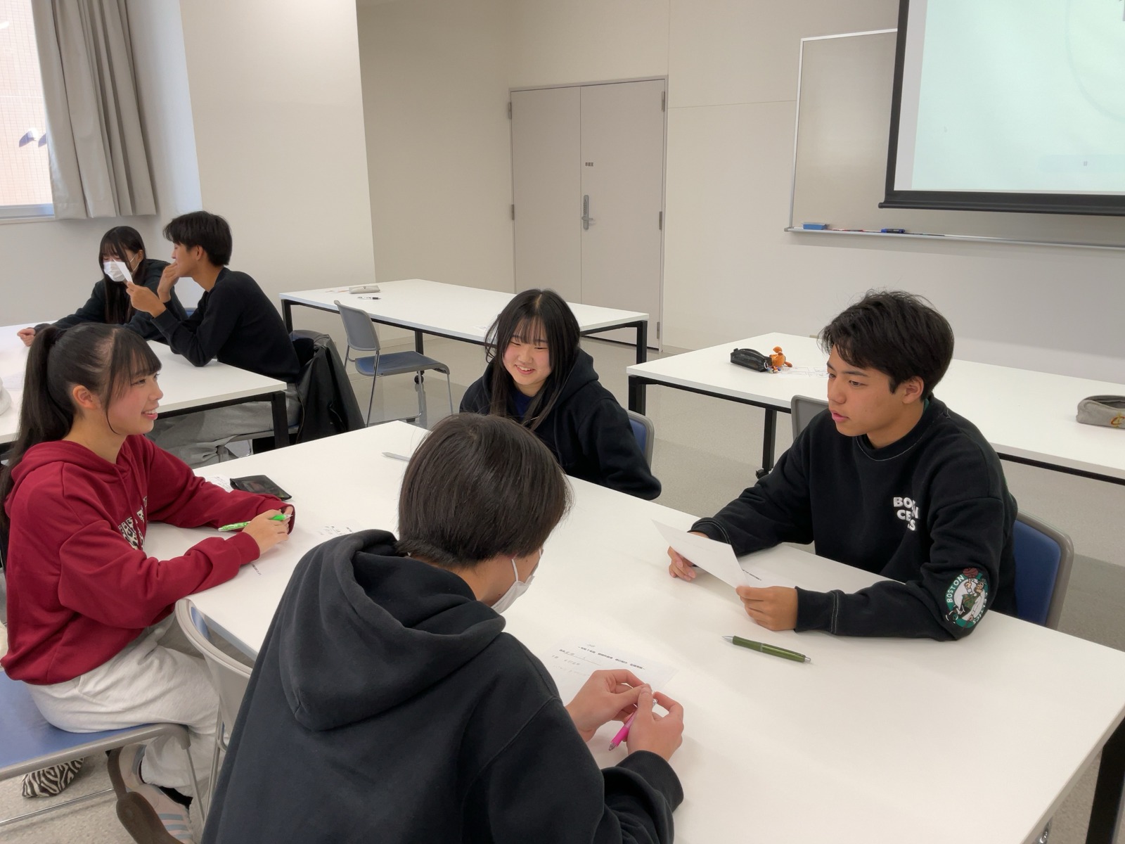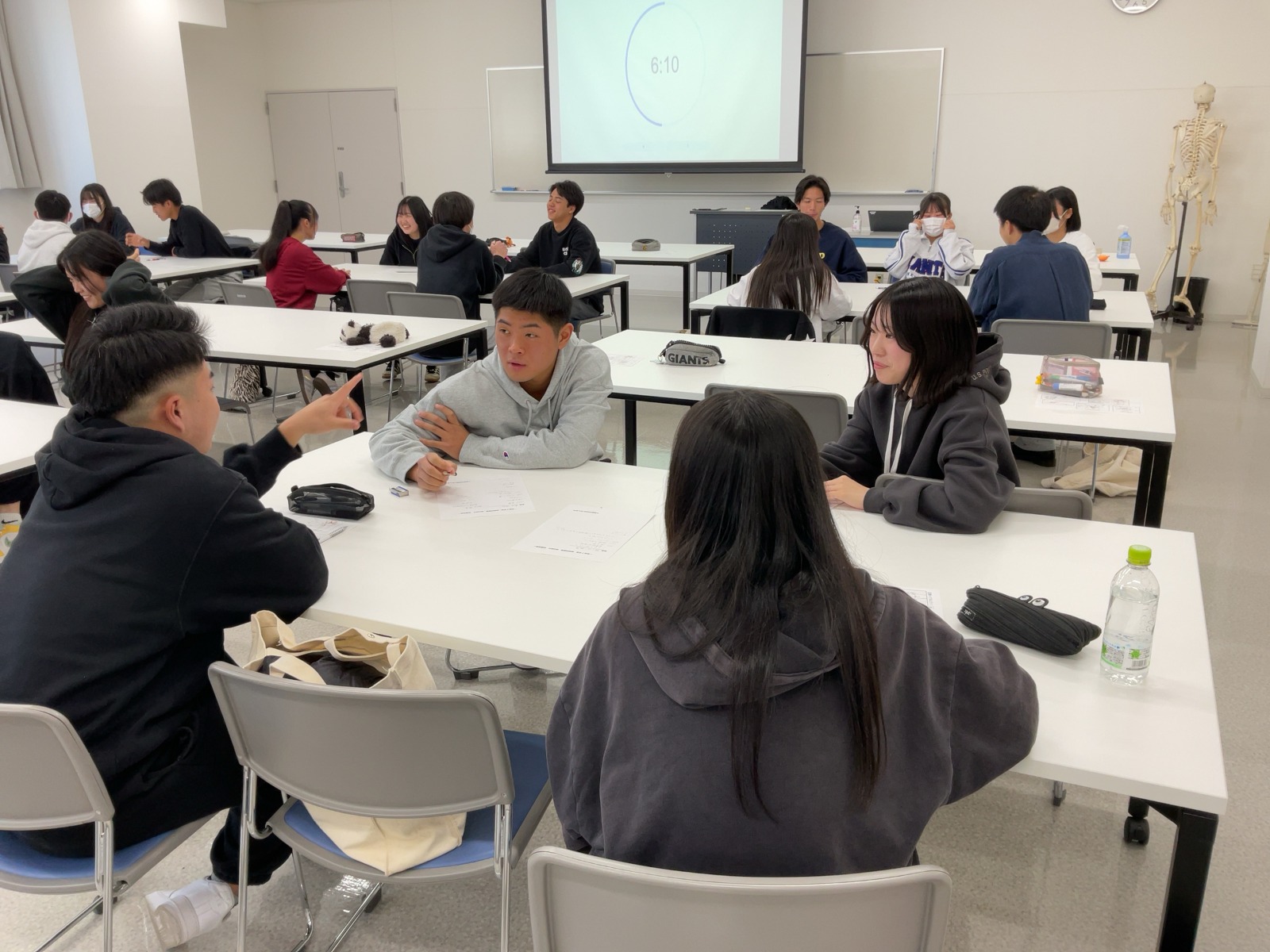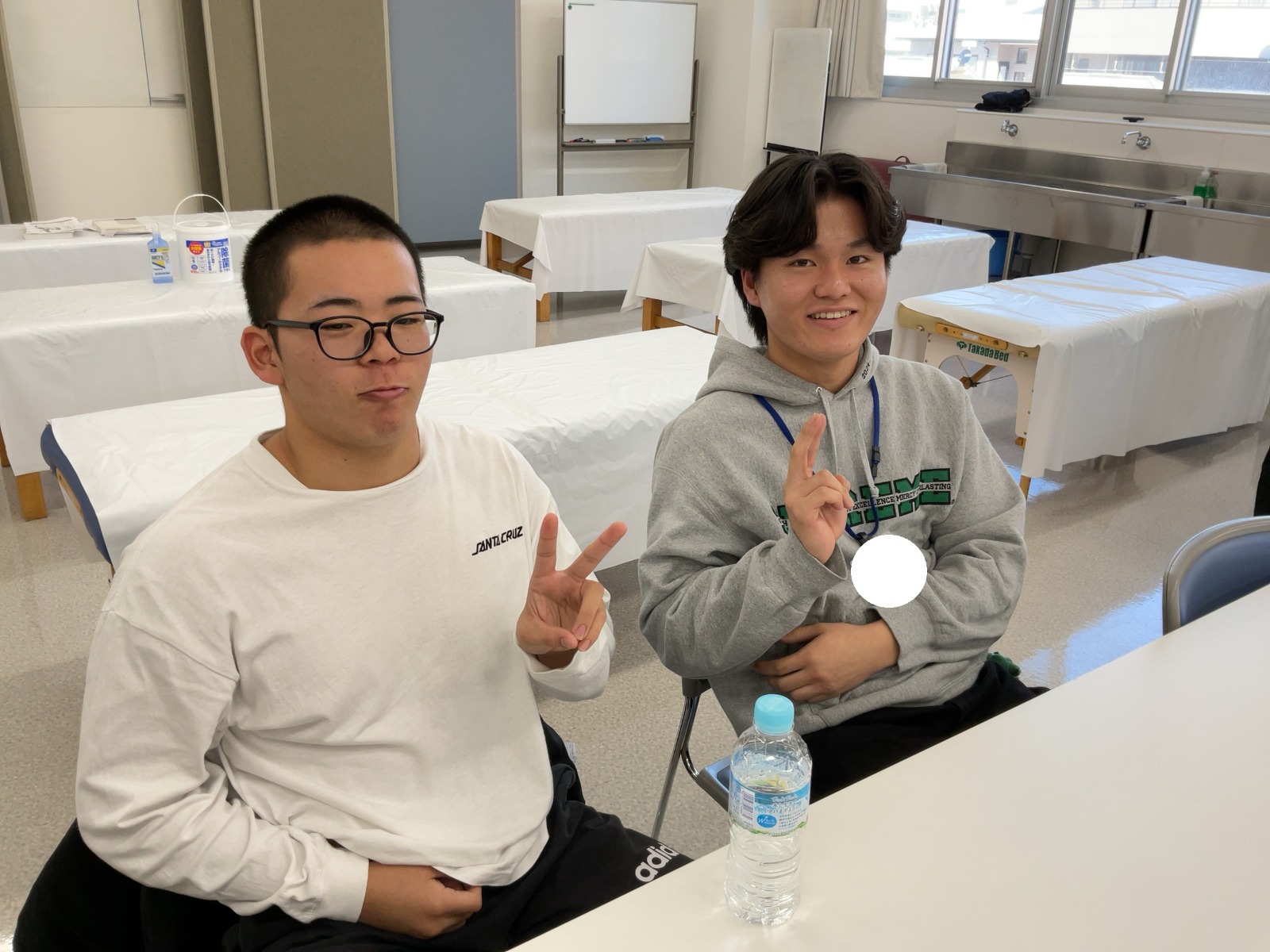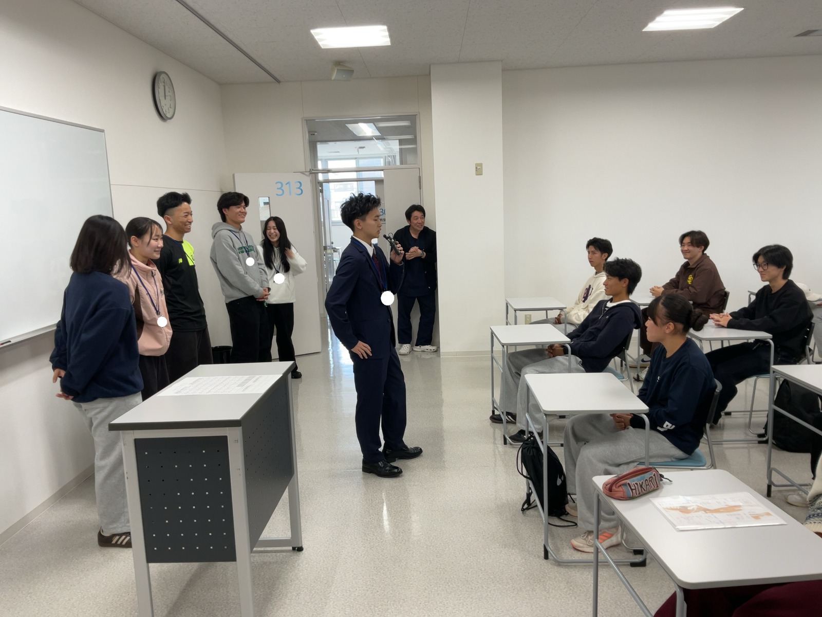 休憩中に新入生と仲良くなっていますね!