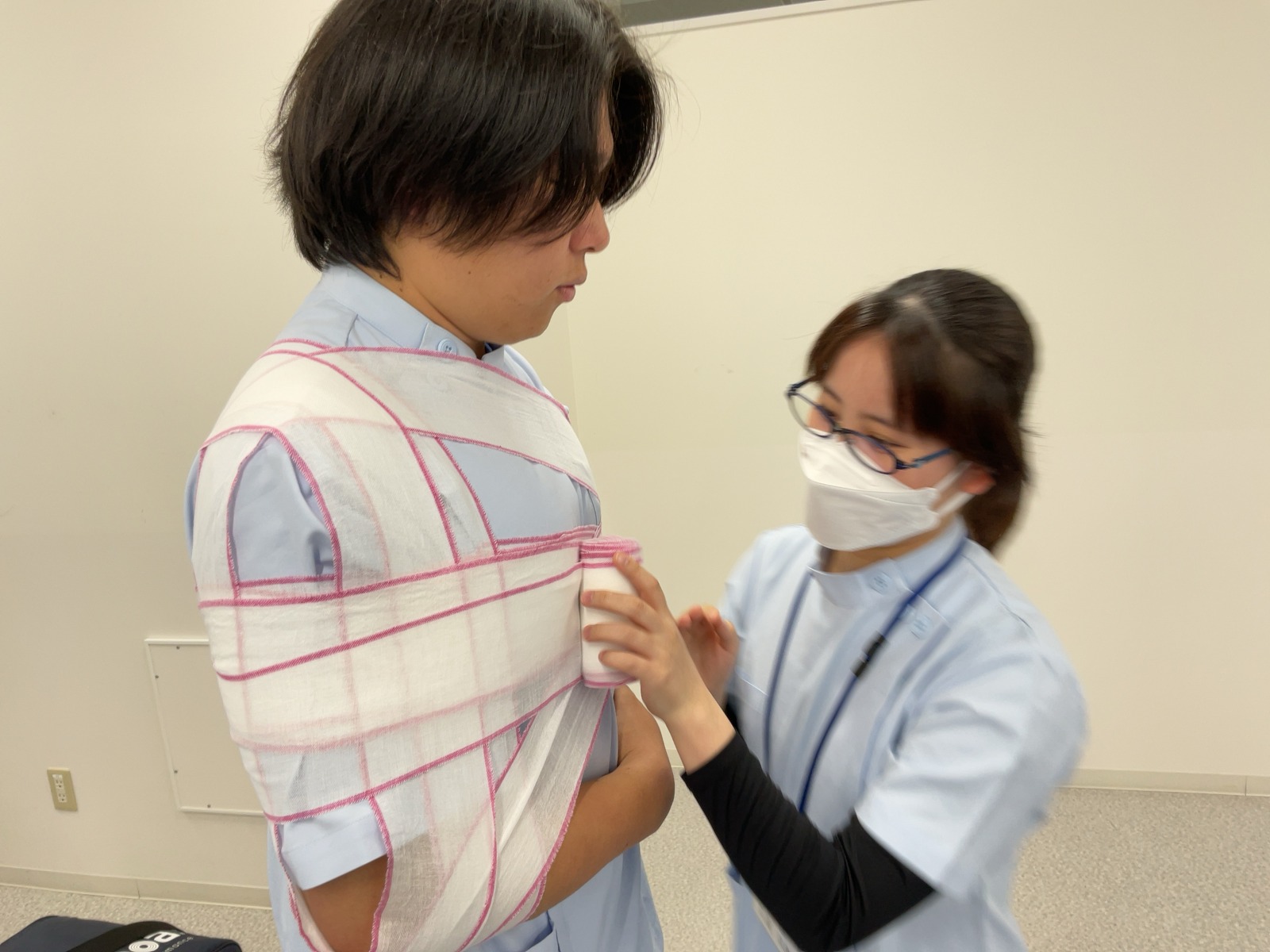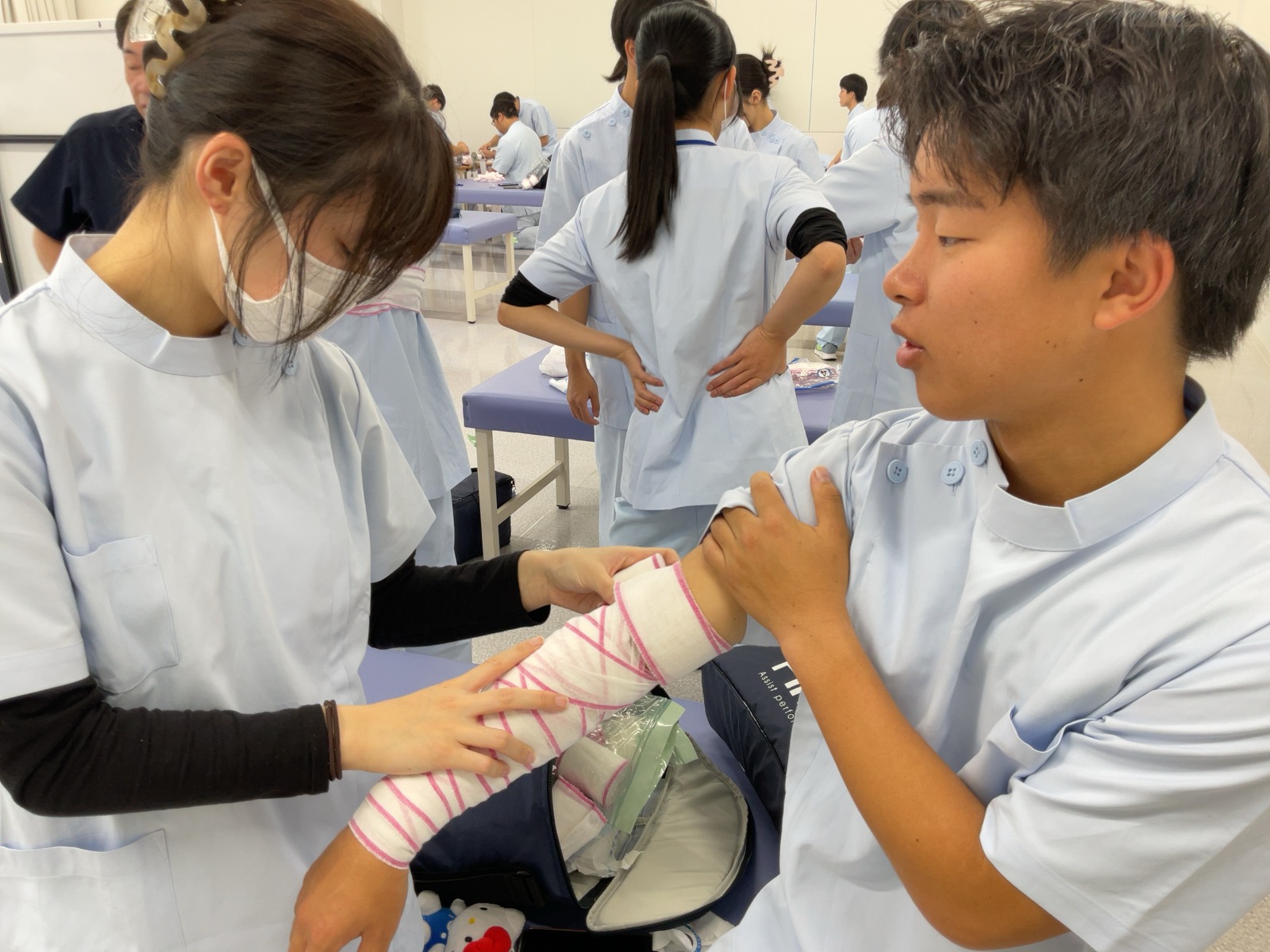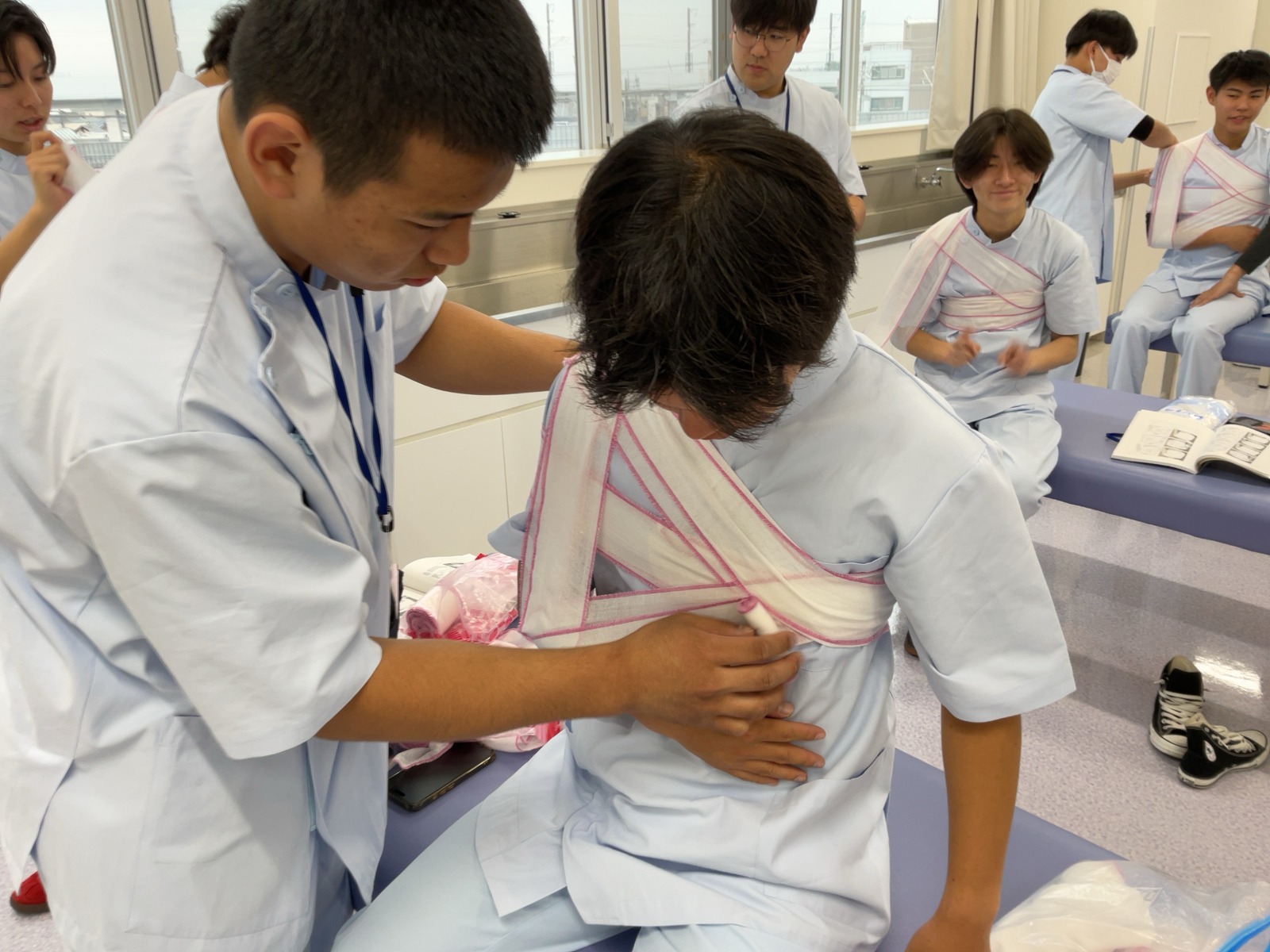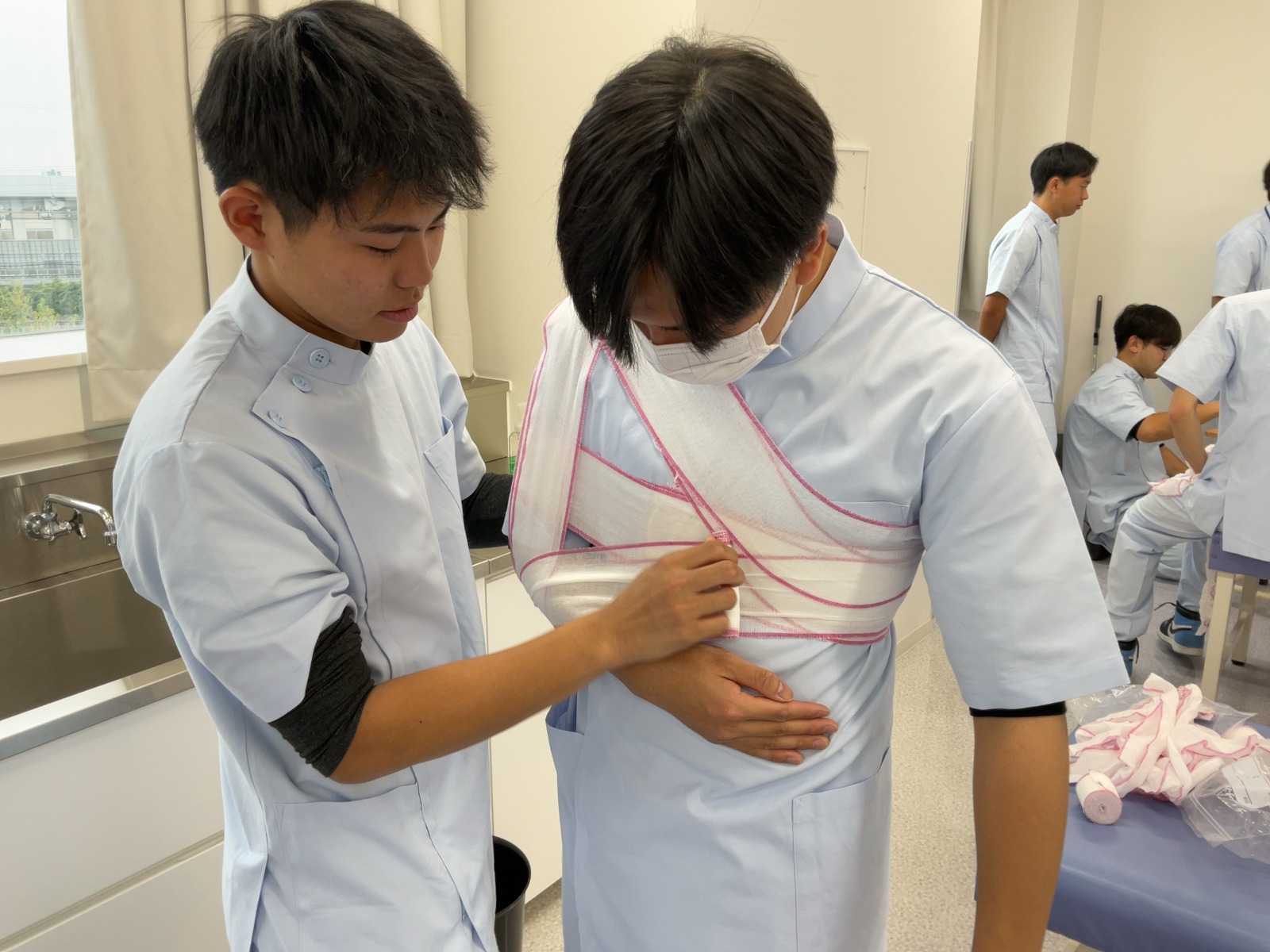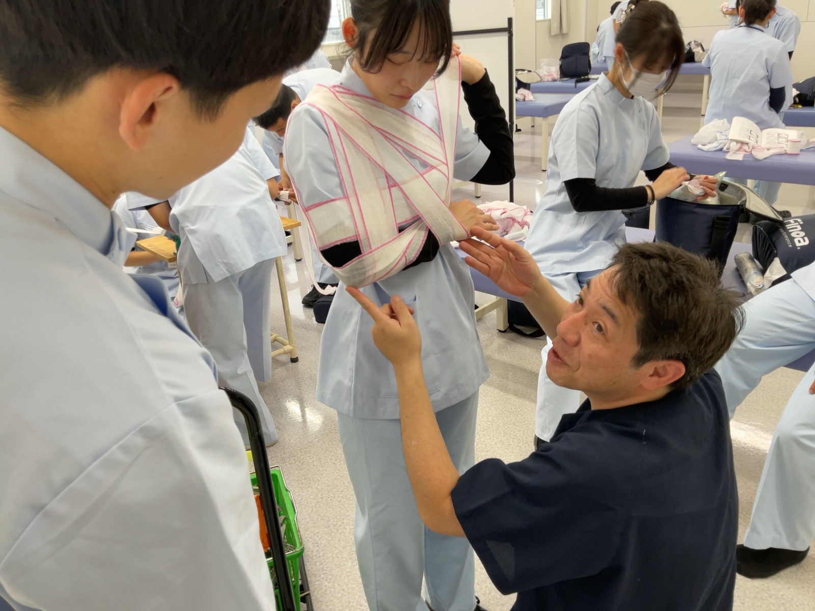松原T担当の包帯授業です。