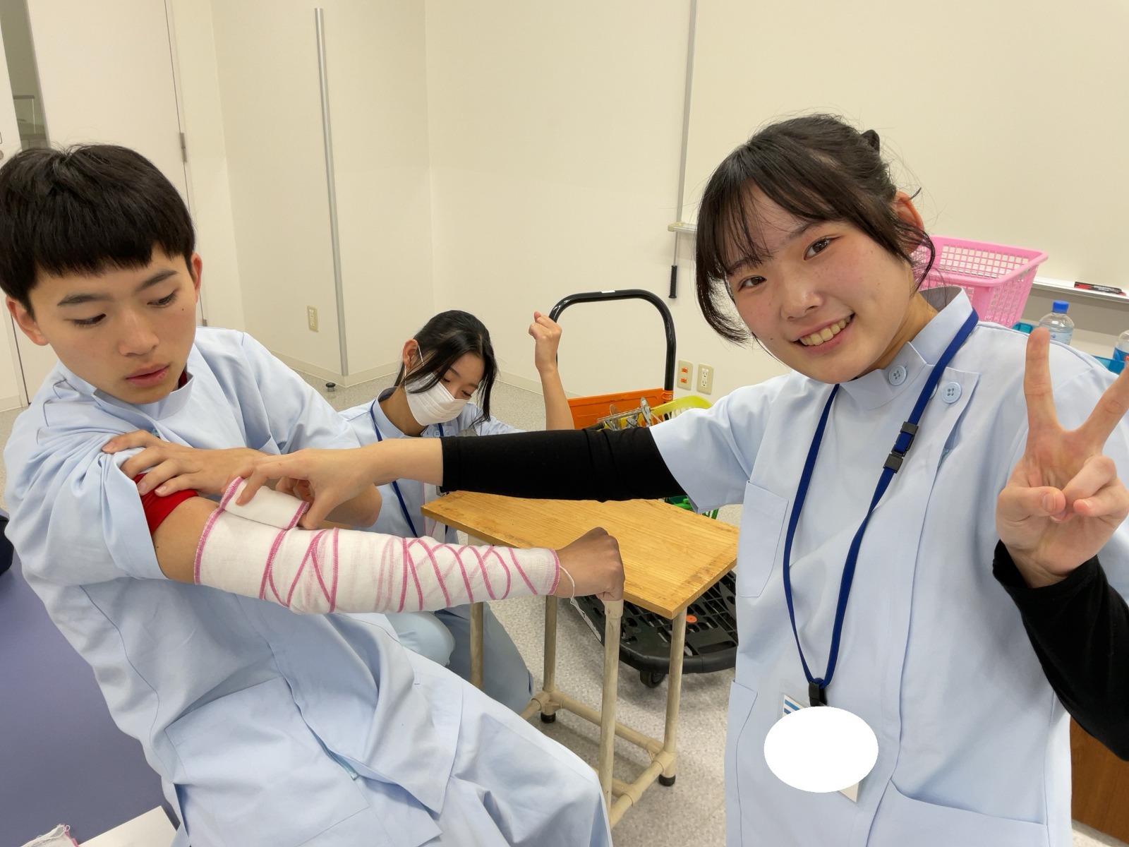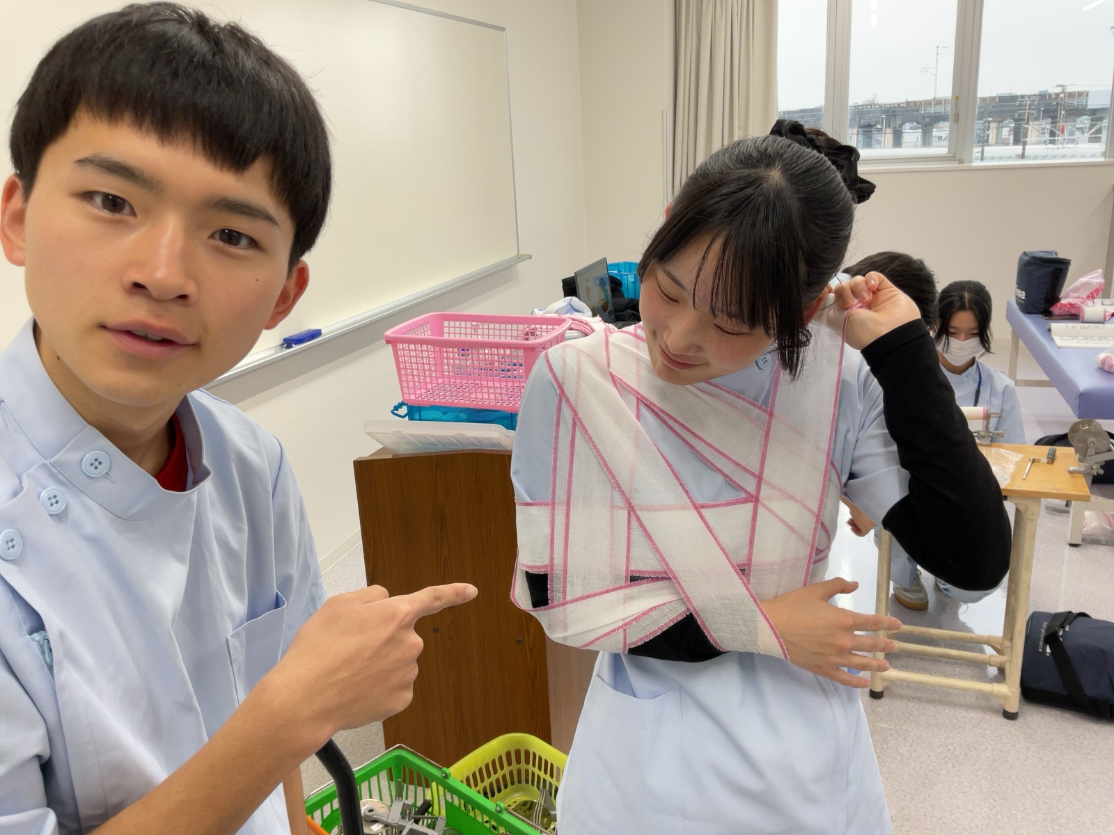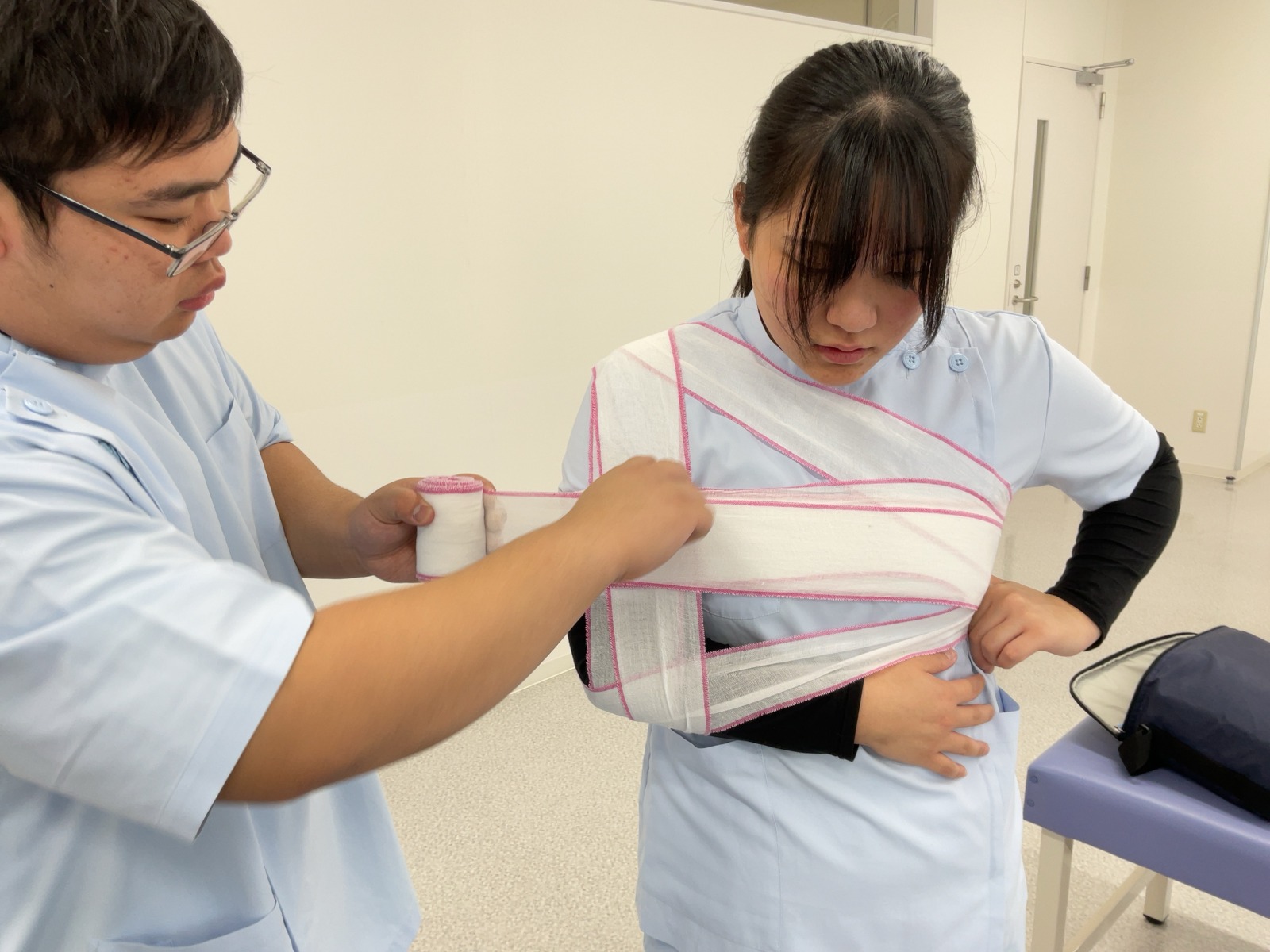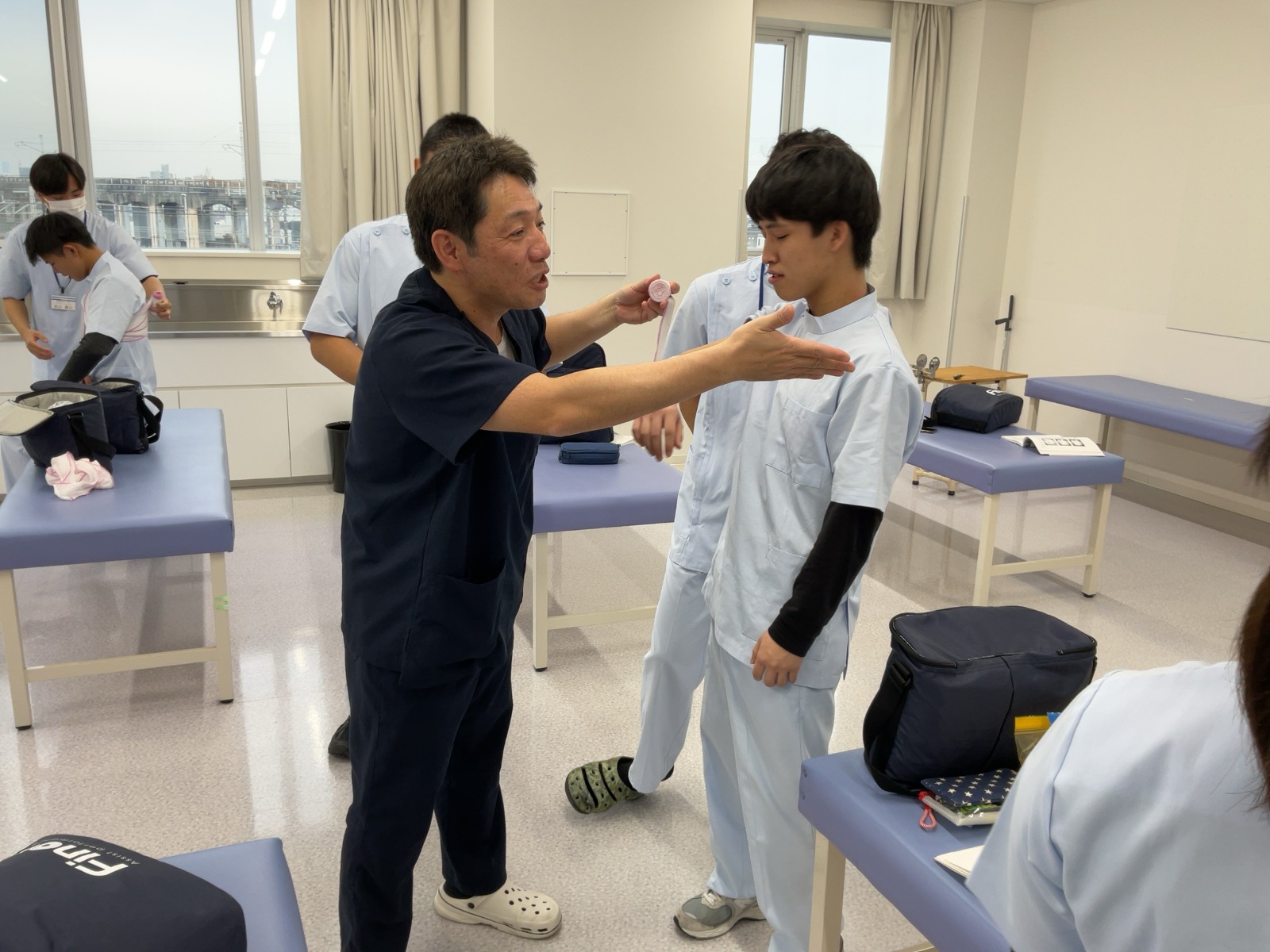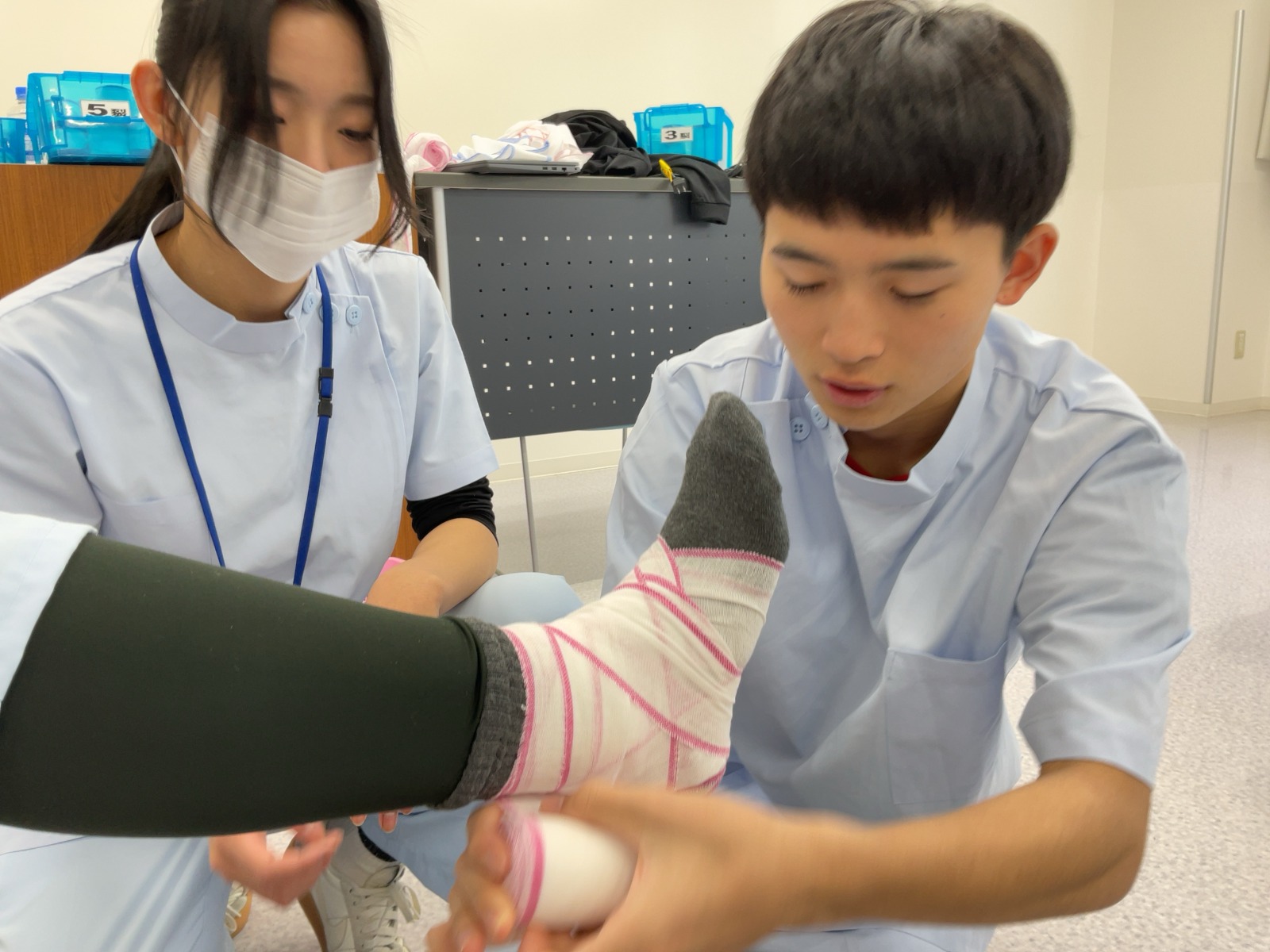 松原T担当の包帯授業です。