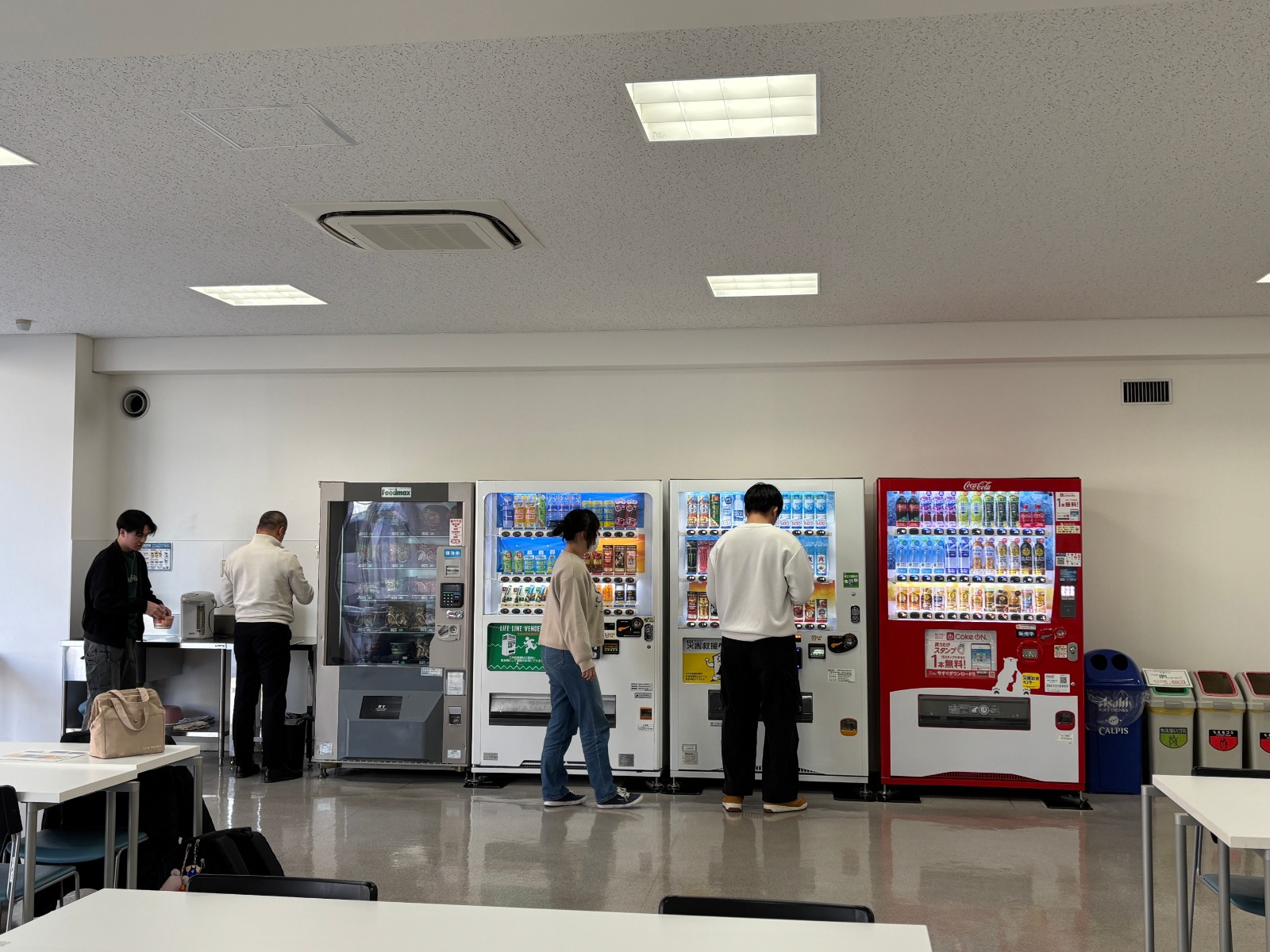 1階学生ホールには軽食の自動販売機があり、