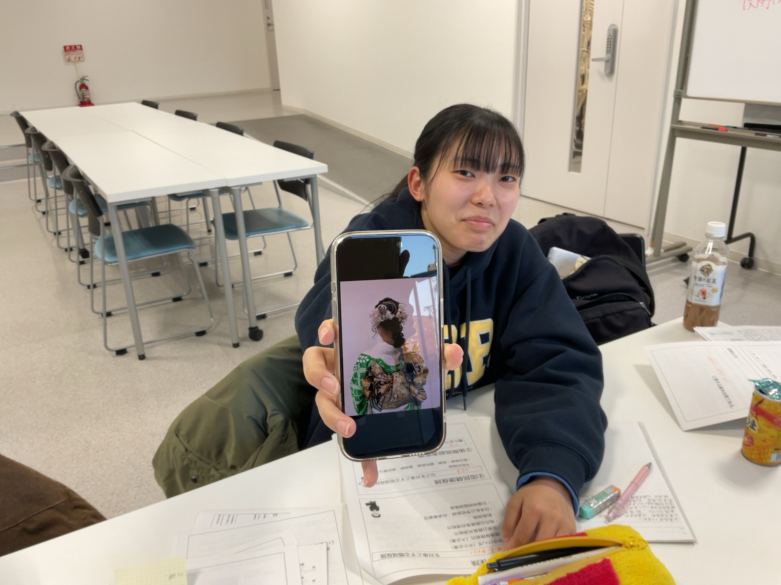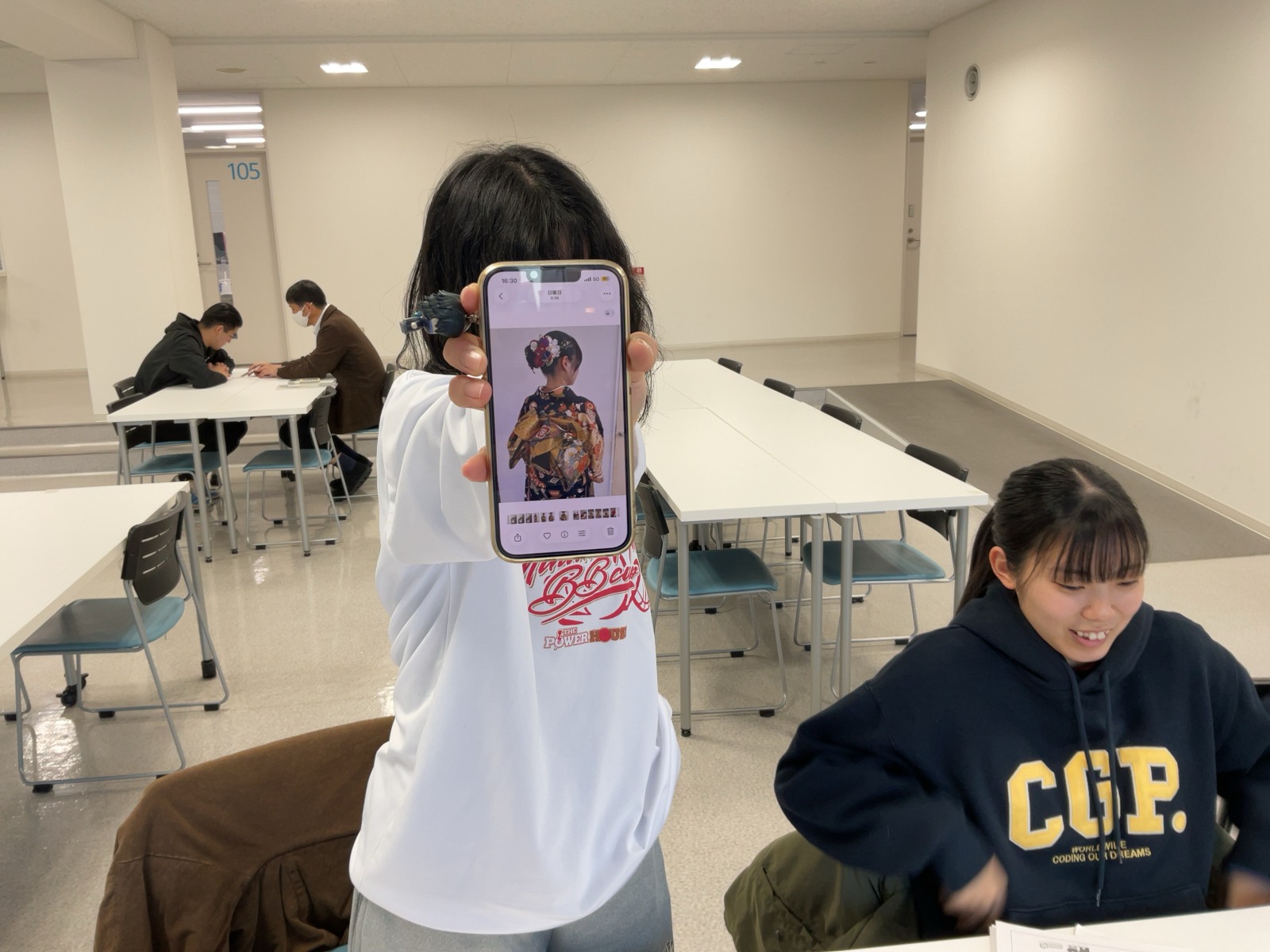 明るい緑の振袖に黒金帯のコントラストが新鮮ですね!