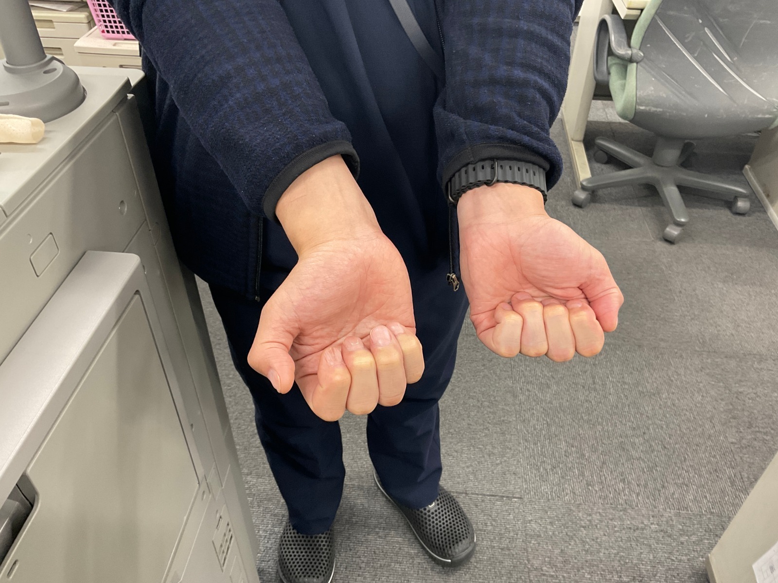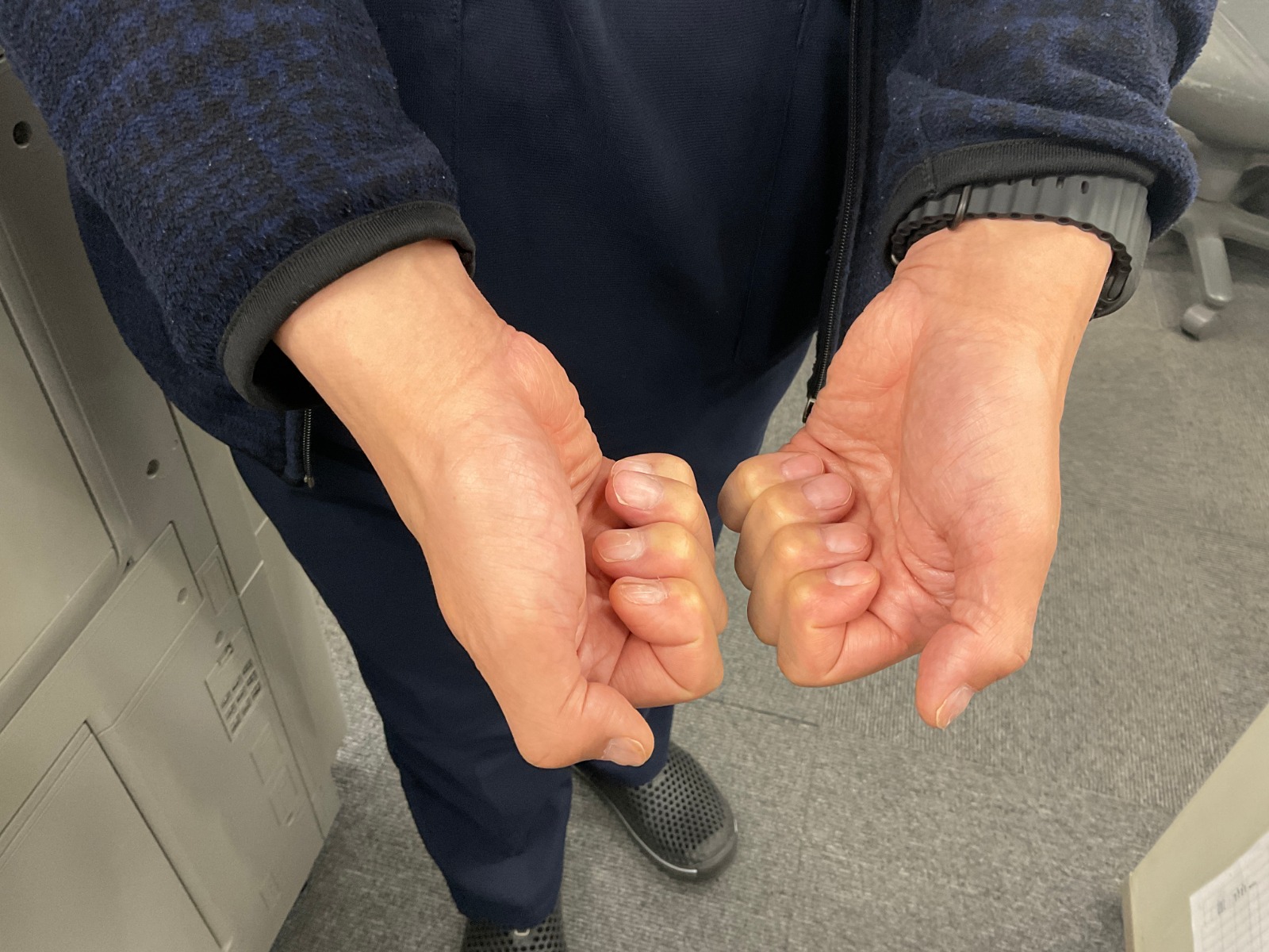 指を曲げるのが難しくなっています。