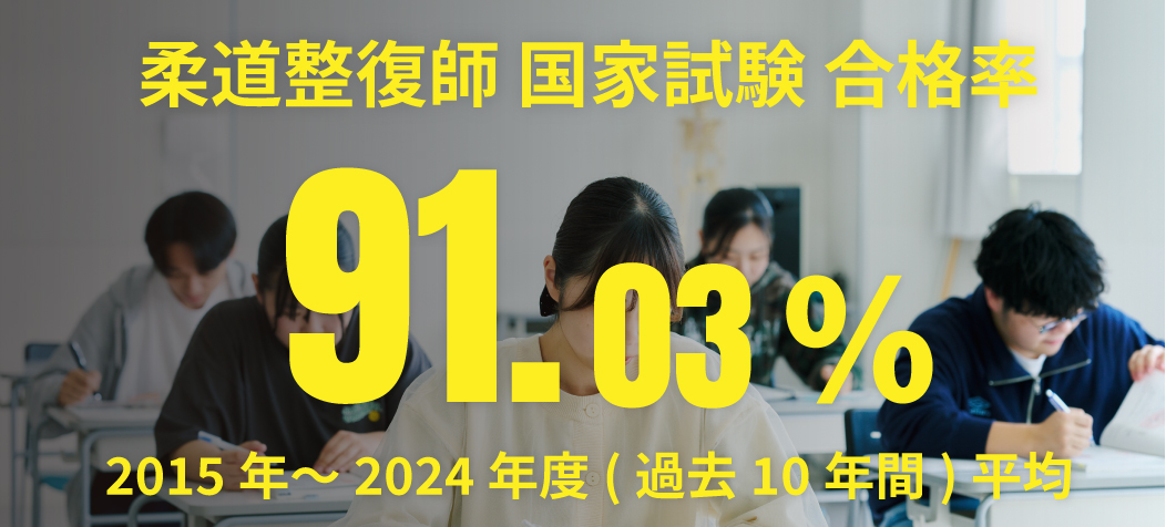 令和6年度の米田柔整 現役卒業生の国家試験合格率は91.2%(合格者数52名/受験者数57名)、既卒者も含めた全国合格率57.8%と比べ、約33.5%高い数字となりました。